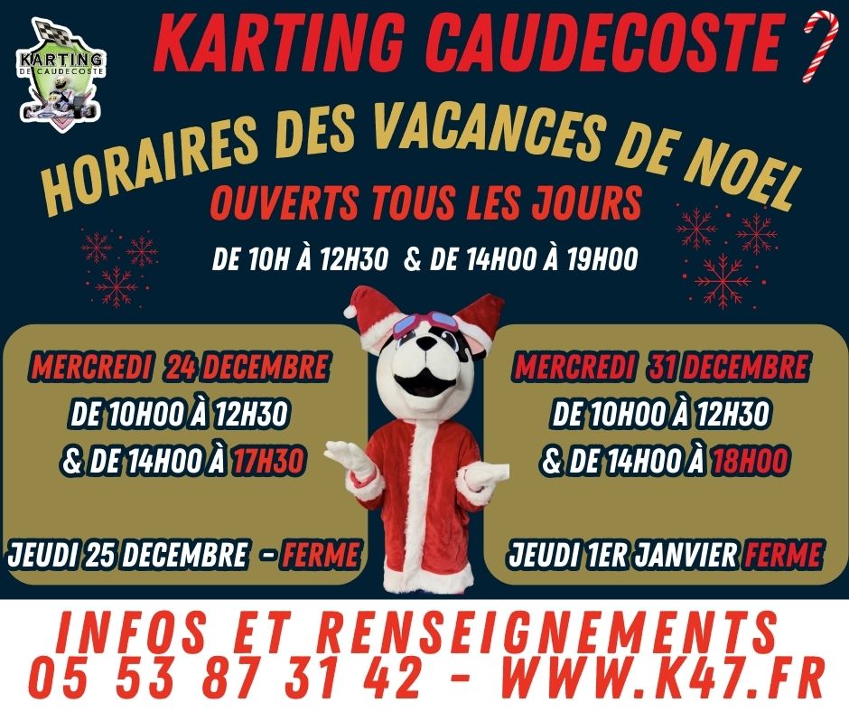 Notre complexe de karting situé à Caudecoste est ouvert tous les jours, même les jours féries. Sauf le 25 décembre et le 1er janvier.